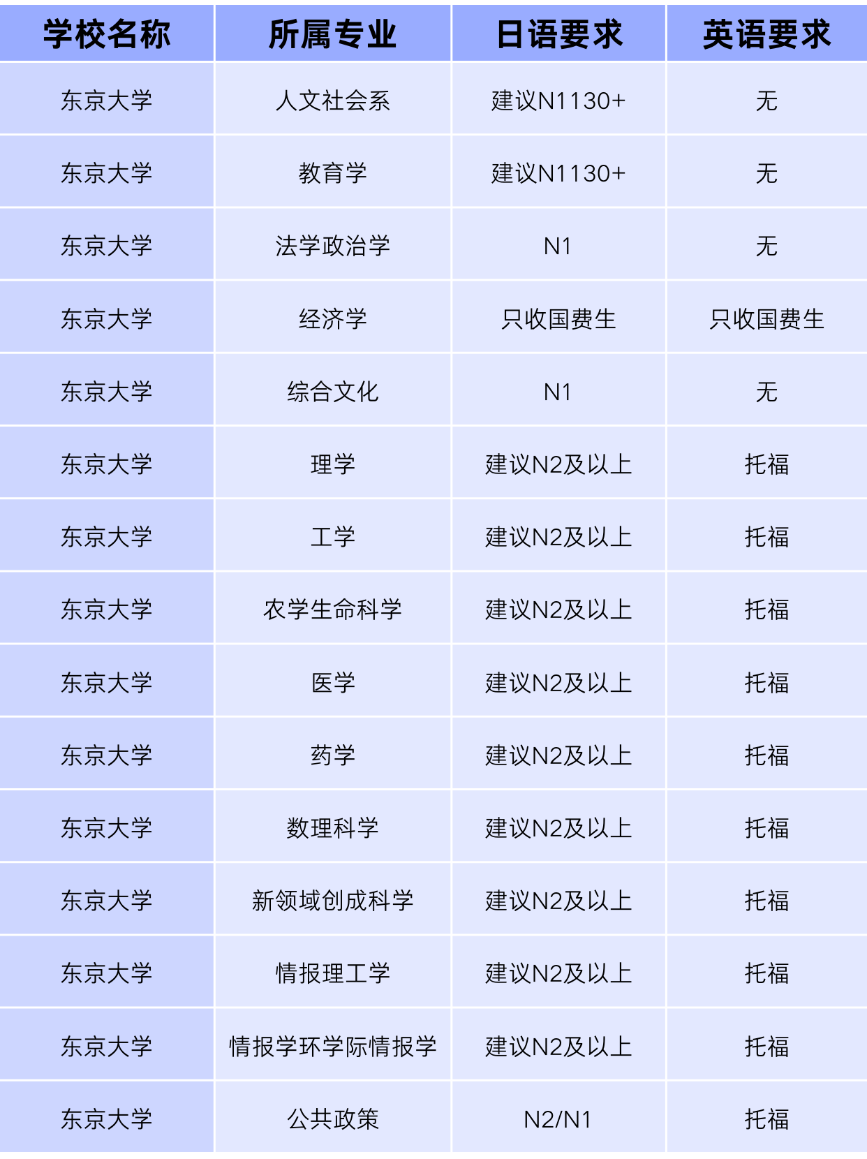 樂(lè)申整理了部分日本熱門(mén)大學(xué)及專(zhuān)業(yè)的研究生申請(qǐng)語(yǔ)言要求,有其它想要了解的學(xué)校和專(zhuān)業(yè)可以DD~