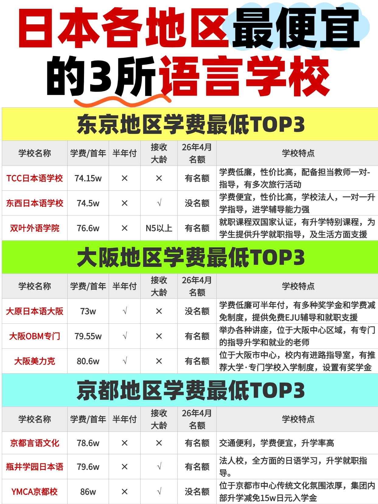日本各個地區(qū),最便宜的3所語言學校