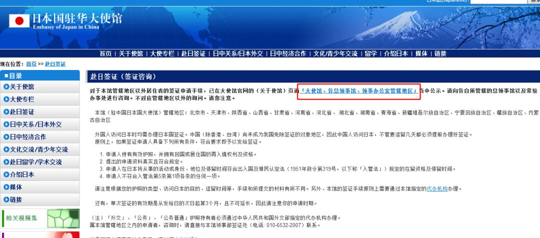 1. 登錄日本國(guó)駐華大使館官方網(wǎng)站,點(diǎn)擊赴日簽證