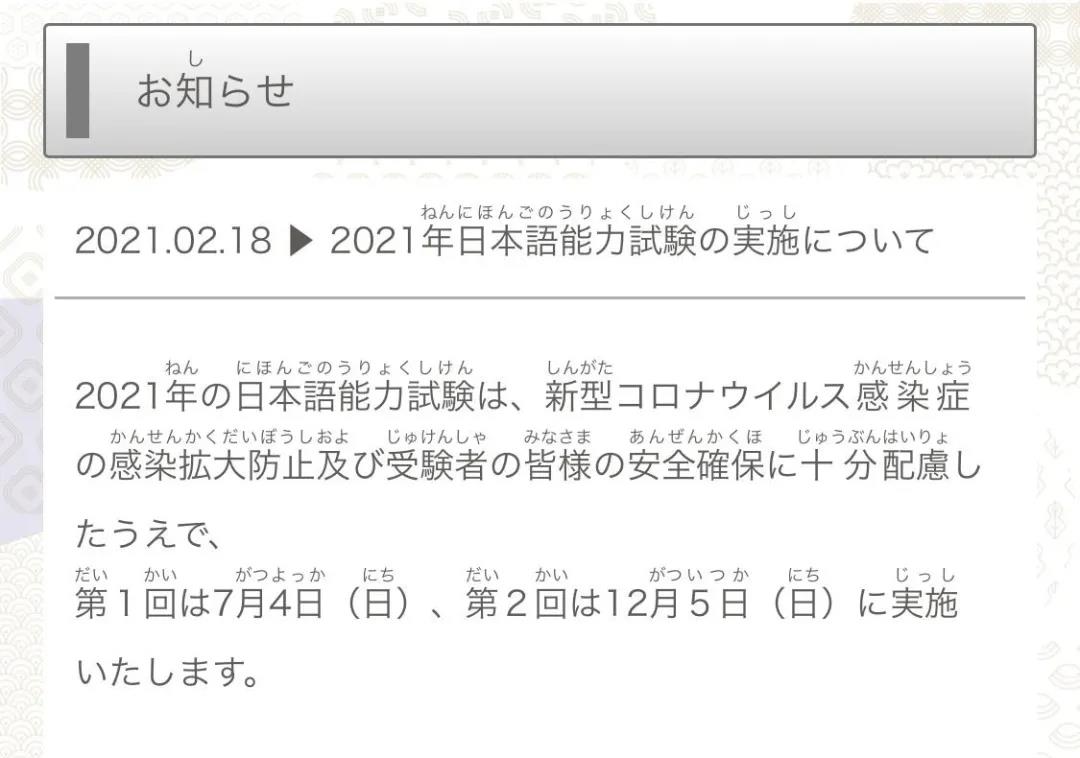 來自日語能力考官方消息:在做好防疫措施基礎(chǔ)上,確定實施2021年日語能力考試,兩次考試時間分別為7月4日、12月5日。